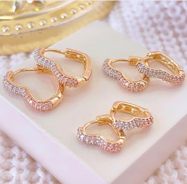 Kit três Brincos Argolas Coração Pequeno Cravejado com Zircônias Cristais